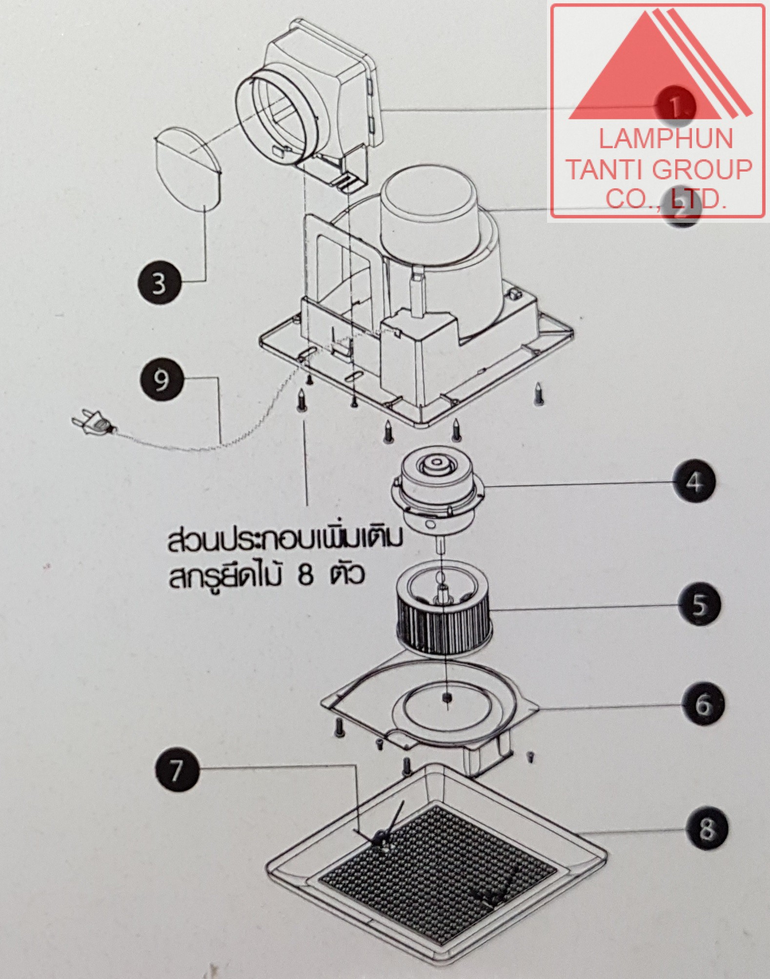 8.ควรเสริมความแข็งแรงสำหรับเพดานที่ติดตั้งพัดลมให้เรียบร้อย โดยสามารถรับน้ำหนักของพัดลมได้ประมาณ 3 กิโลกรัม
